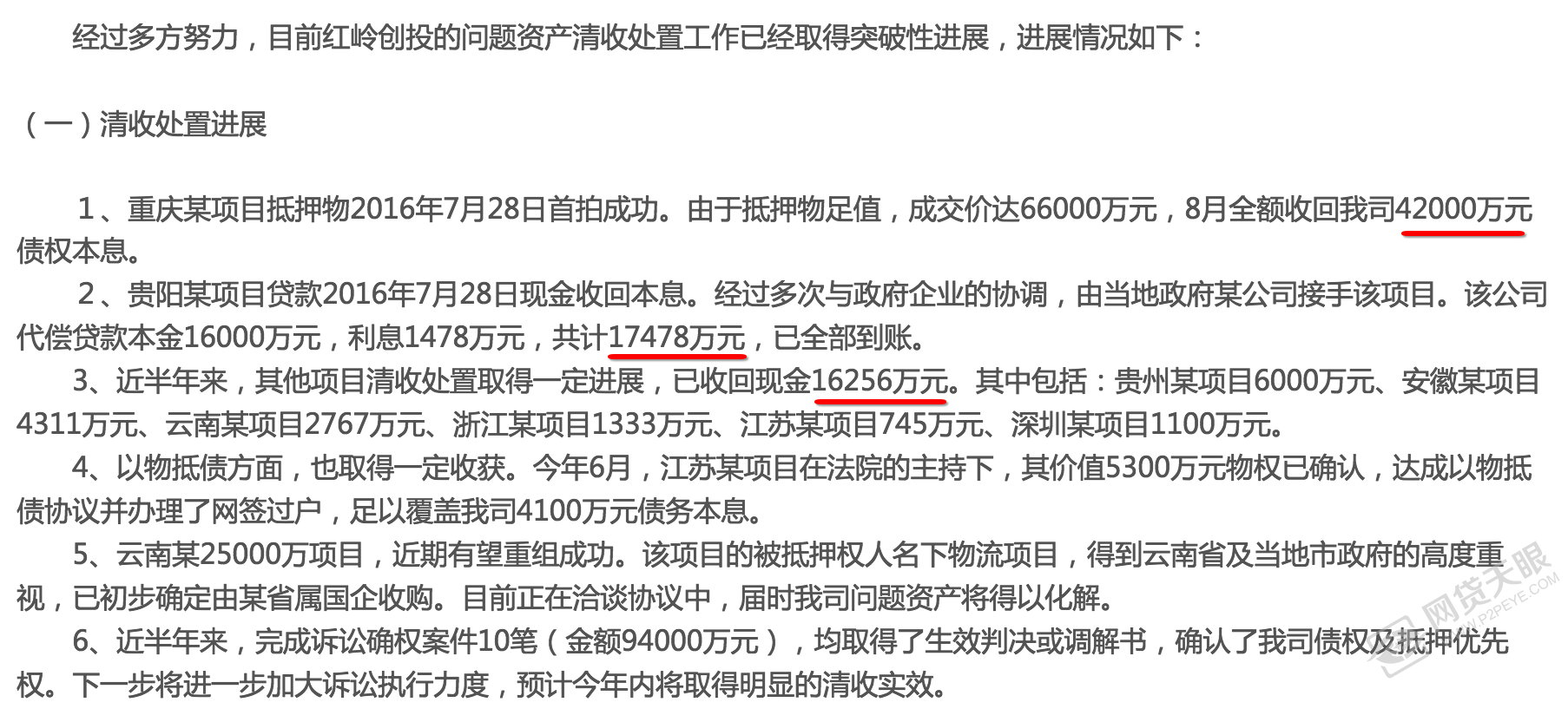 昨天,国内成交规模最大之一的P2P网贷平台红岭创投发布公告,称半年来在不良资产处置方面取得重大进展,已收回数亿资金。这对于之前因有数十亿巨额逾期成为新闻热点的红岭创投,再次以这条“喜讯”在互金投资人和行业媒体上广泛传播。