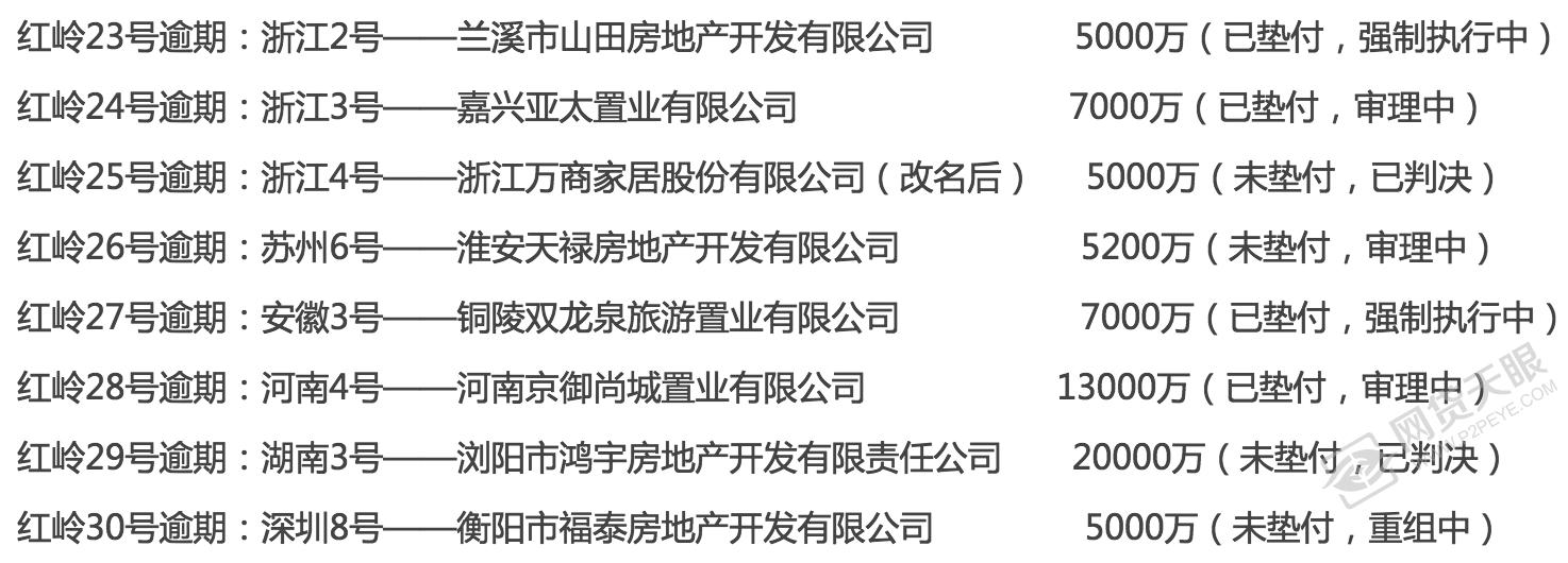 3个月来新增的逾期项目清单,总金额6.72亿,基本上都是三四线城市房产项目