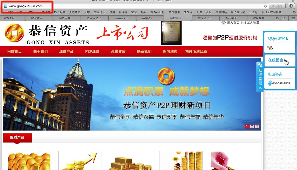 今天有P2P日报的读者通过微信发来消息跟我说,[一个40岁左右的投资人],他用他30万血汗钱投的一家P2P平台上海恭信资产管理公司【恭信财富】(www.gongxin888.com)跑路了,问我能不能到现场去采访一下。