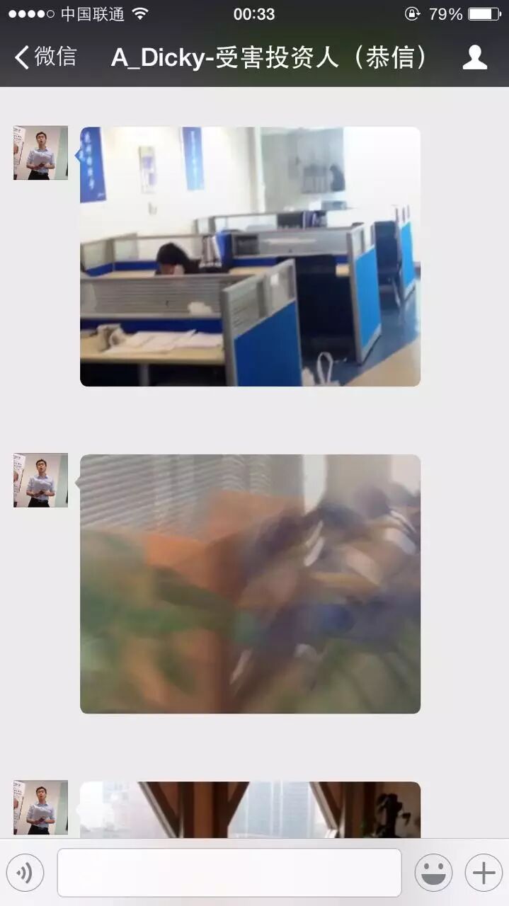然后第二天早上我就被数十声biu。。biu。。biu不停的微信消息声给叫醒了,打开一看是昨天那个受害投资人发来的几十张关于跑路平台恭信财富的现场照片..说实话当时挺心酸的,也挺难过,是真的很难过…?我昨天看电视剧看到夜里三点才睡好么..