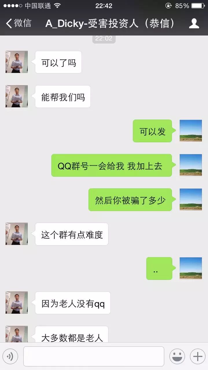 事情到这,交代的已经差不多了,但是当我提出发布这个信息的时候要加上他们的维权QQ群,以防有其他投资人还不知道这个消息,也方便受害投资人相互联系,大家可以一起想办法维权的时候,又出现了以上这个问题。让我又着实心酸一把,但是还好后来终归还是创立了一个群