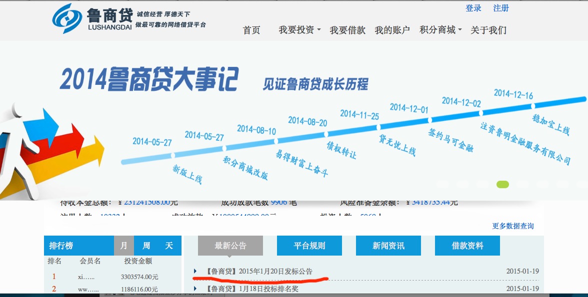 1、据网贷天眼论坛爆料,半小时前(晚10点)有投资人发帖称,上过两次央视的鲁商贷出现提现困难,并附其与平台方聊天记录,据了解,目前鲁商贷官网没有发布任何相关公告,如下图所示仍在发布新标的。