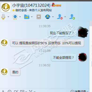 2、据网贷天眼论坛消息,德州贷(http://www.dezhoudai.cn)目前限制体现,不过该平台官网上没有公告,不过有投资人通过QQ问及其客服限制提现的问题截图,以下是与该平台客服的对话记录。