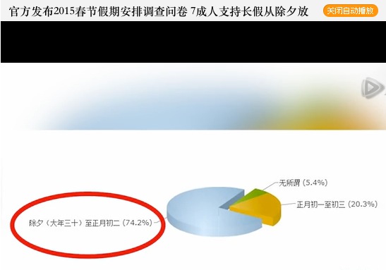 昨天,中国人民大学调查中心就春节法定节假日安排以社会抽样调查和网上调查等方式公开征求意见。该调查中心称,此次调查“受有关部门和单位委托”。这是全国假日办“改编”成立****旅游工作部际联席会议制度后,首个关于放假的调查问卷。截至记者发稿时,调查问卷呈现“一边倒”的情况,约七成受访者支持春节长假从除夕开始放。?无所谓的那些也真是任性。。