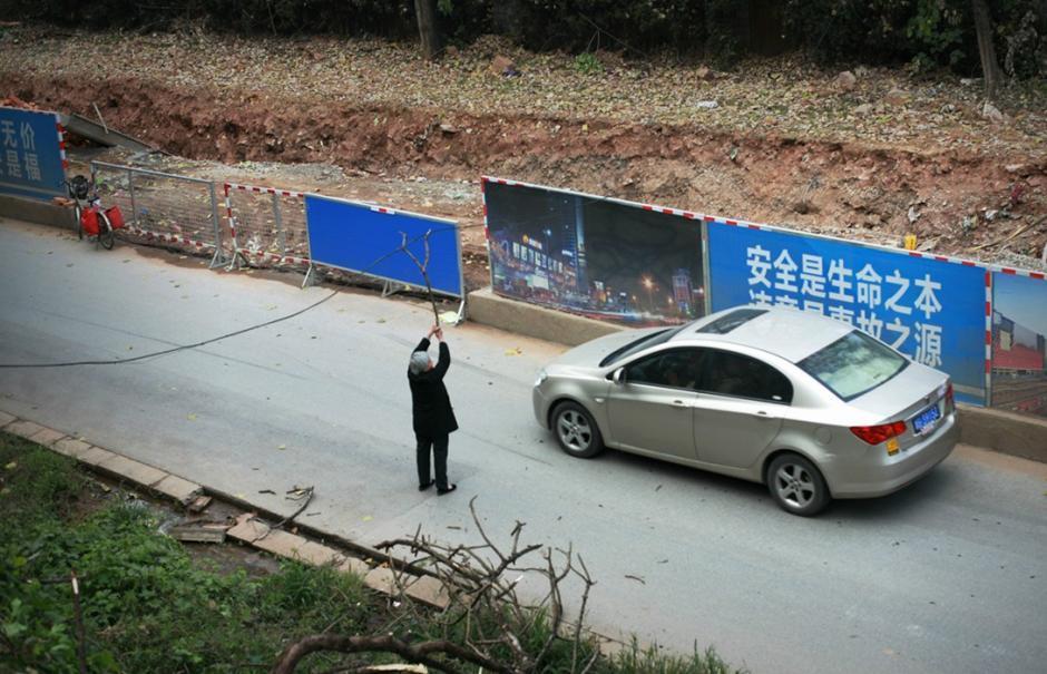 12月9日,浙江金华市区江北通园路,风非常大,一根电线被刮落,悬在马路中间。这位头发花白的老奶奶用一根树杈高举电线半个小时左右,300多辆车从她身边平安通过,图中是网友悄悄拍下了的老奶奶的背影。这就是大爱吧!