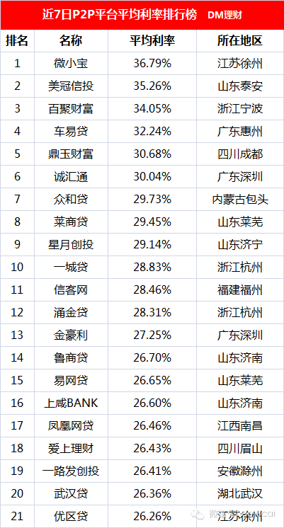临近年底扔有6家平台利率超30%,21家平台利率超26%的P2P日报(不