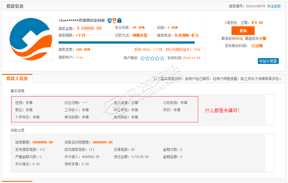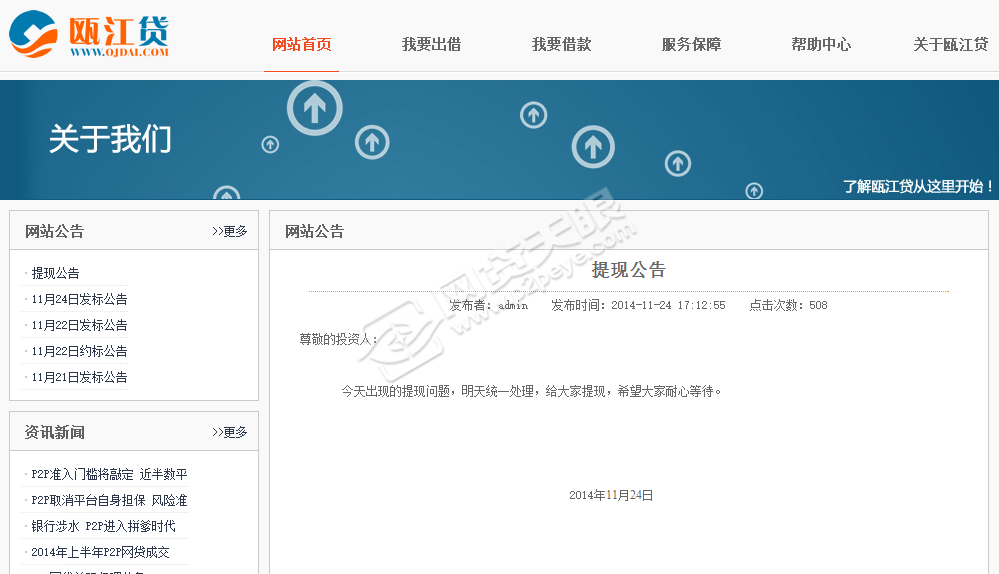 2、据网贷天眼论坛爆料,瓯江贷疑似提现困难,据说24日已经提现困难了,可以小平台引不起注意,希望没人中雷。也有另外一种可能是昨天处理,今天到账,但这种可能希望渺茫,为何?公告的内容如此的草率,利率太高、项目有虚假嫌疑。
