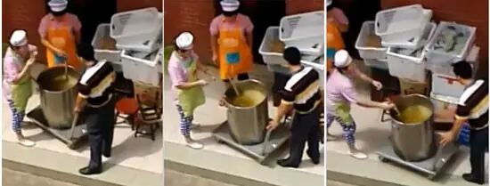 @央视新闻:【食堂阿姨啃完骨头扔回汤里给师生吃】9月16日上午,广州交通技师学校一学生拍下恶心一幕。第3食堂的阿姨,竟把啃过的骨头扔回汤里,继续端给师生吃!据说,这汤是免费提供给师生喝的。校方回应称食堂系外包,会停业整顿一天。