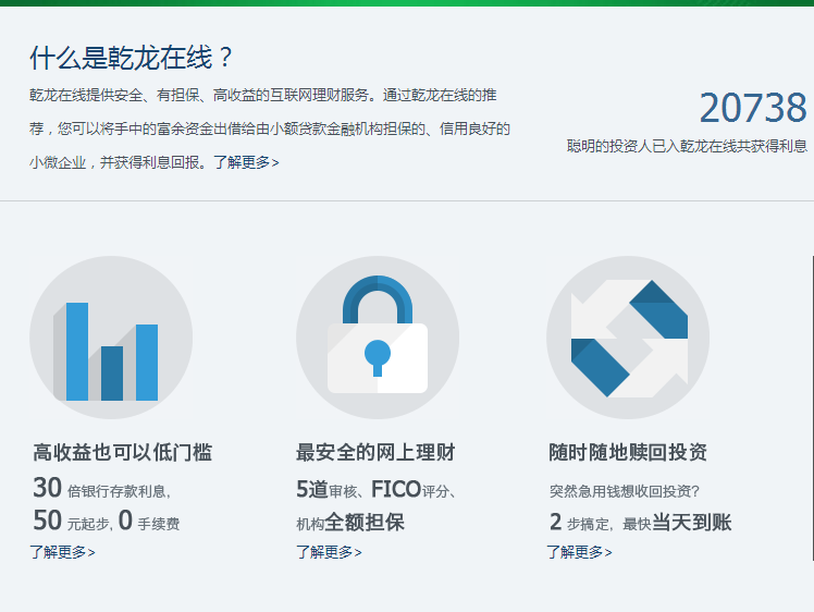 6、据零壹财经消息,乾龙在线涉嫌造假、抄袭,预警证据:一,乾龙在线首页与有利网几乎一样,除具体数字有所出入外,包括“5道审核”“FICO评分”等有利网独有模式均一五一十照搬。而乾龙在线回应称:“至于模版跟有利网像的事情,我们也会逐渐改进。”其说法对于其造假事实无法自圆。二,搜索其“400-676-1312”客服电话发现,与另一家网贷平台“必喜贷”的客服电话一样。三,其网络备案号查询后显示为“百喜网”,非乾龙在线。