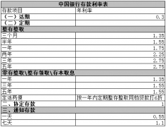 2016中国银行存款利率表