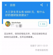 你还在A股等牛市?结果又错过了比特币的大牛市。 知乎上有个帖子,有个人在2011年那年问,大三学生手头有6000块钱,买点啥好。2011年12月21日有人回答, “买比特币,保存好钱包文件,然后忘掉你有过6000元这回事。五年后再看看。” 基金君好羡慕这位发帖的