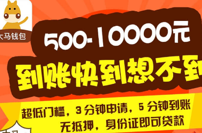 大马钱包:新口子,年满18周岁,实名认证,线上审核,额度范围:1000-5000,下款快!